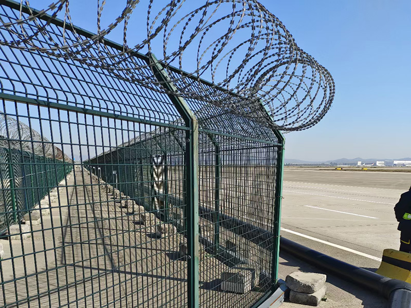 機(jī)場(chǎng)護(hù)欄網(wǎng)又稱作“Y型安全防御護(hù)網(wǎng)”,由Y型支架立拄,加強(qiáng)型焊接網(wǎng),安全防盜連接件和熱鍍鋅刀片刺網(wǎng)組成,是強(qiáng)度和安全防御性級(jí)別很高的圍界護(hù)欄網(wǎng)產(chǎn)品。被廣泛應(yīng)用在機(jī)場(chǎng)、軍事基地等高安全場(chǎng)所。機(jī)場(chǎng)護(hù)欄網(wǎng)的突出特點(diǎn)就是美觀實(shí)用、安全性高、防攀爬能力好,網(wǎng)體連接方式采用特制SBS緊扣件,有效防止人為的破壞性拆卸,橫向四道折彎加強(qiáng)筋,使網(wǎng)面強(qiáng)度顯著增加。